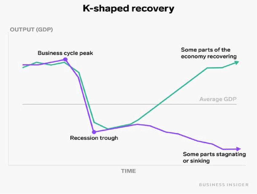This uneven growth is known as a K-shaped recovery, where certain regions or industries flourish while others struggle under lingering inflation and high borrowing costs.