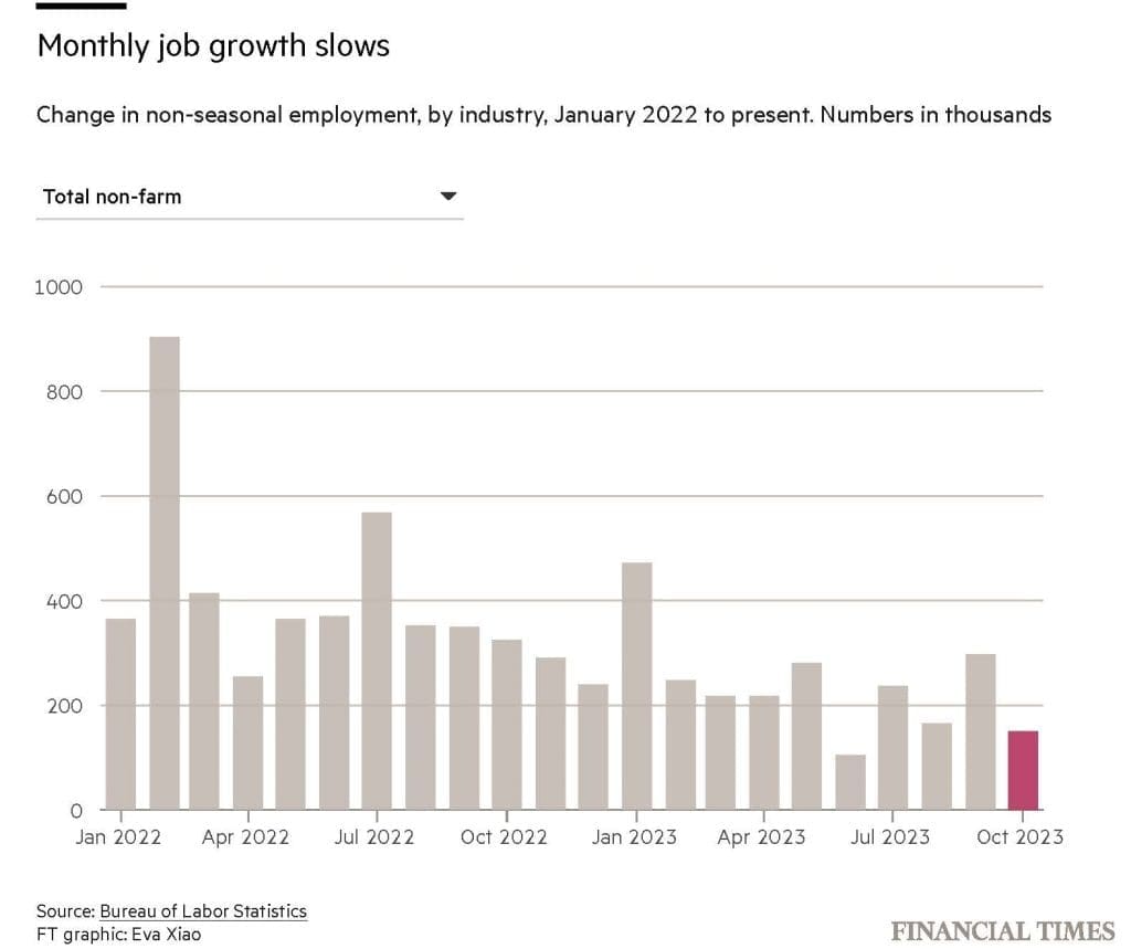 Friday’s hiring report was below expectations, and that’s great news. Expectations were 180,000. It actually came in at 150,000 and for perspective, September was a hair under 300,000.