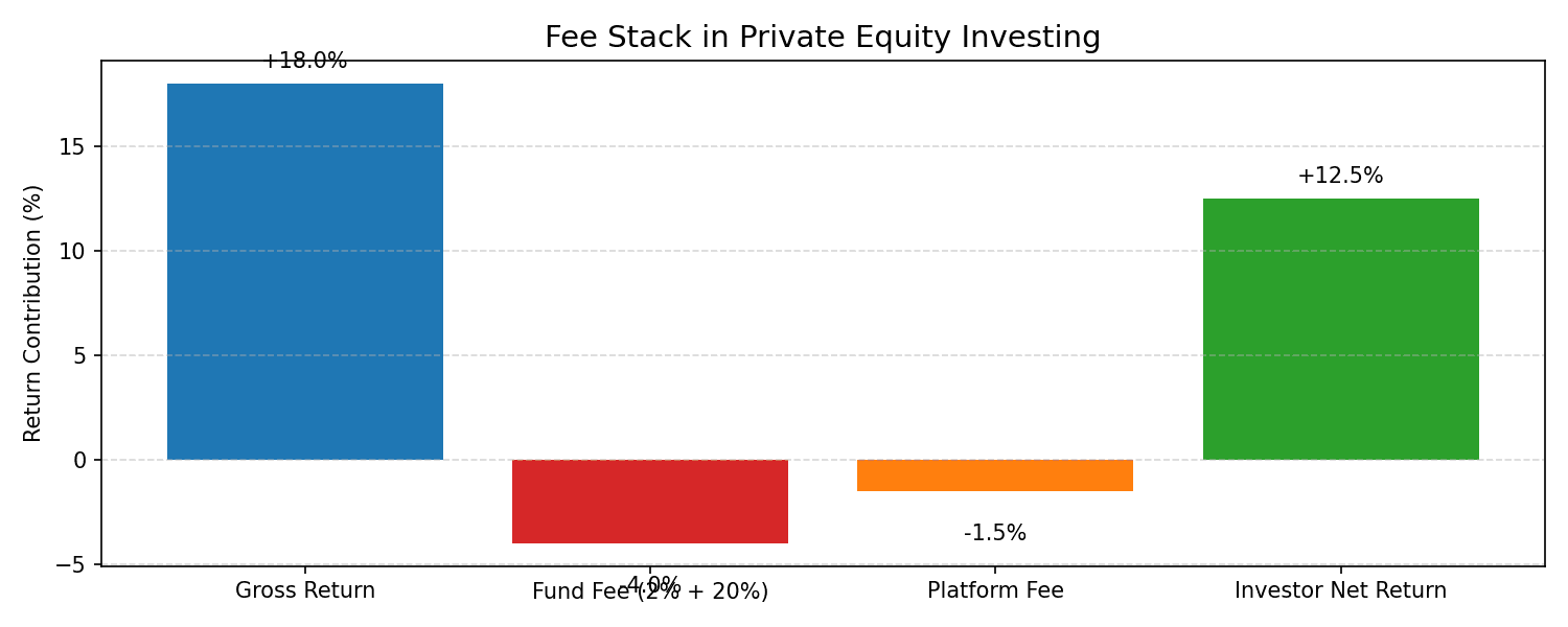 Here’s the catch: the outperformance, or alpha, that Swensen once captured has diminished. With more money chasing fewer high-quality deals, inefficiencies are harder to find. And while returns may have compressed, fees have not. The typical “2 and 20” model (2% annual fee and 20% of profits) still applies, and additional layers of fees from platform providers or feeder funds often pile on.