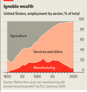 Rather than resurrecting the factory floor, we should focus on where value is truly being created today: services, skilled trades, and technology. Fields like healthcare, finance, consulting, and skilled labor are not only growing, they offer better pay, greater flexibility, and higher margins than manufacturing.